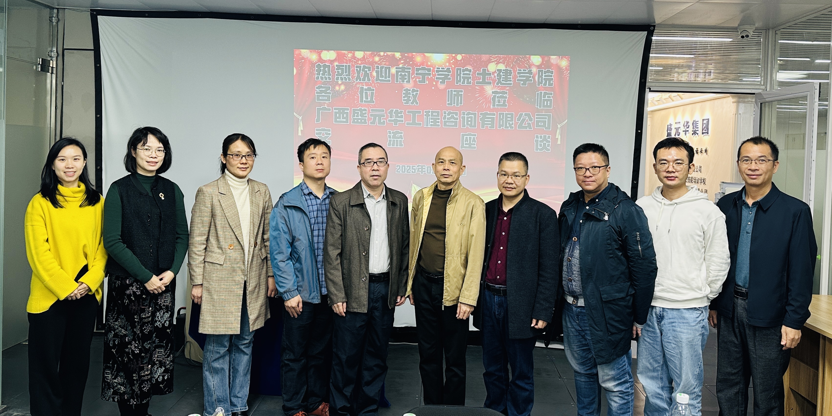 3月19日上午,南寧學院土木建設工程學院教工支部書記楊劍、副院長助理陶月平、工程造價專業(yè)專任教師孔德輔、韋麗、李欣欣一行蒞臨廣西盛元華集團總部開展交流活動。
